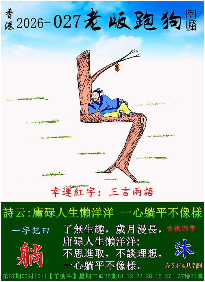 027期老版跑狗一字記之曰:【躺】