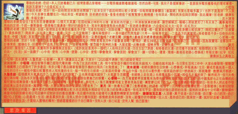 【2】尊敬的老總,您好!有一段時間沒來與您老聞聊了!近來安好?這段時間比較少買碼。但每期還是會關注(創富網)有買也是輸多贏少。也許不是我財、不入我袋!今天是學生農曆生日。特此來信,希望能得到老總的祝福。看看老總能不能幫幫學生轉轉運!匆匆草此,閒時再來信與您閒聊,就此擱筆!祝老總:健康長壽、幸福安康!------流水漣漪