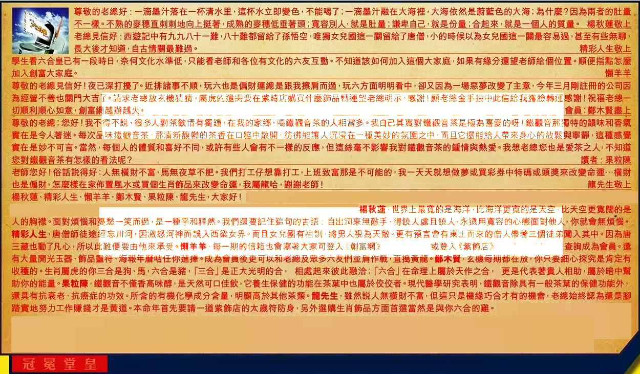 →〖懒羊羊〗:每一期的信箱也會寫著大家可登入《創富網》或登入《紫飾店》詢成為會員。還有大量開光玉器、飾品靈符、海報年曆咭任你選擇。成為會員後更可以和老總及眾多六友們並肩作戰,直搗黃龍。