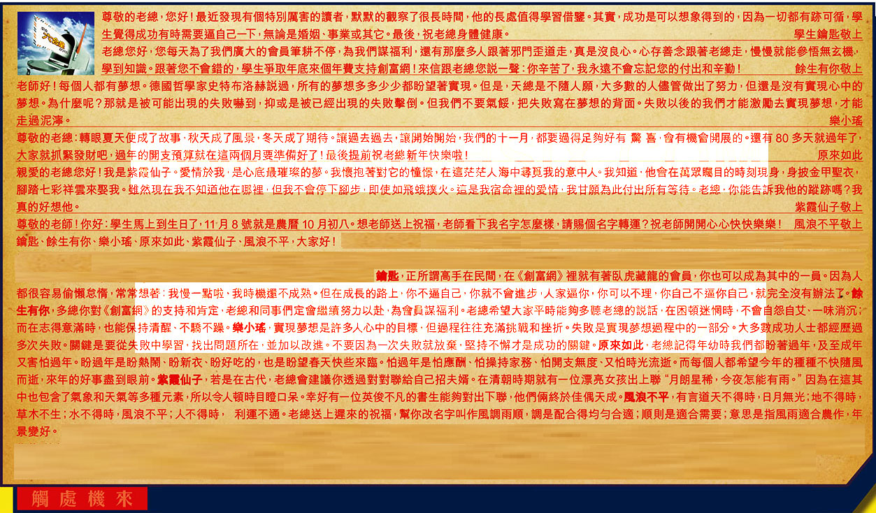 【6】.尊敬的老師!你好:學生馬上到生日了,11月8號就是農曆10月初八。想老師送上祝福,老師看下我名字怎麼樣,請賜個名字轉運?祝老師開開心心快快樂樂! 風浪不平敬上