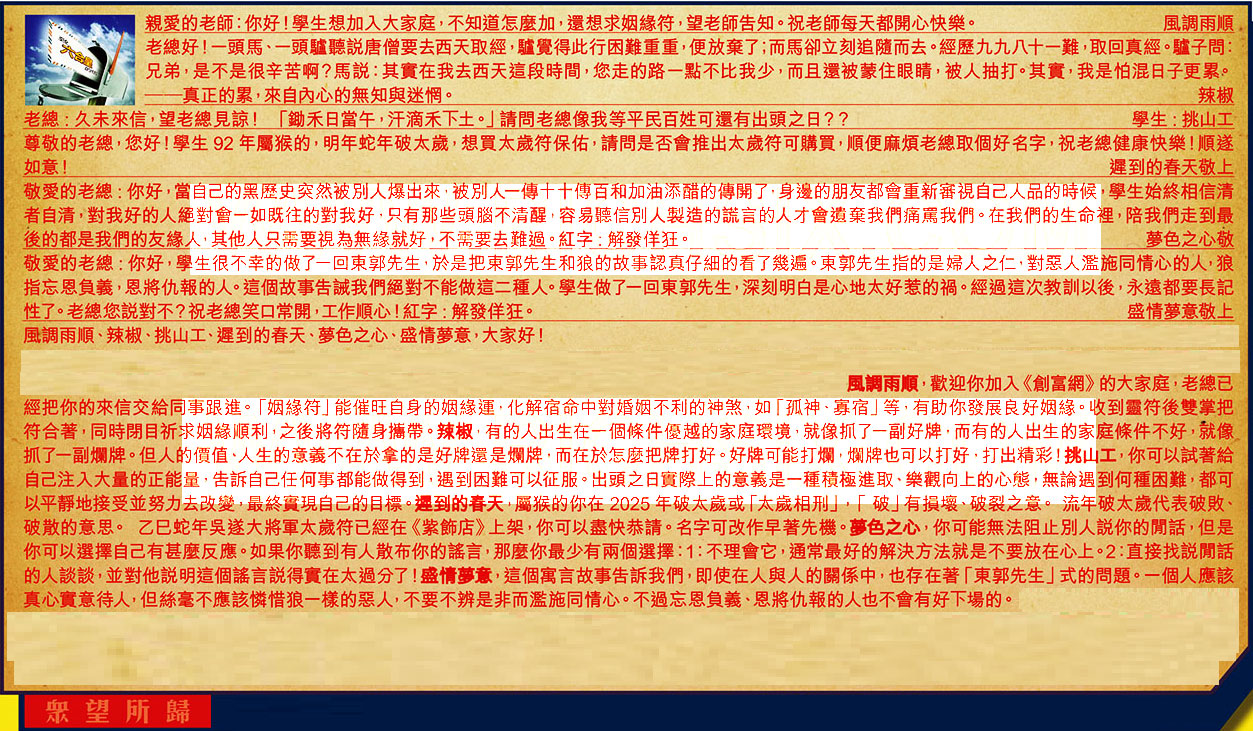 【1】.親愛的老師:你好!學生想加入大家庭,不知道怎麼加,還想求姻緣符,望老師告知。祝老師每天都開心快樂。  風調雨順