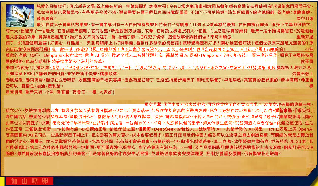 【4】.尊敬的老總,您好。DeepSeek横空出世國產AI崛起掀起,全球人工智慧話題熱潮,衢擊美國Al霸權DeepSeek的成功,猶如一顆璀璨的星辰,照亮了 中國科技發展的道路,也為全球科技競爭格局帶來了深刻的變革。 俊哥哥