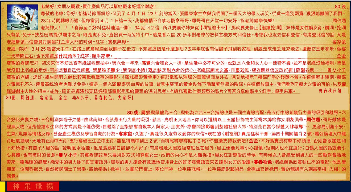 045期:彩民推荐六合皇信箱(紅字:神采飛揚)