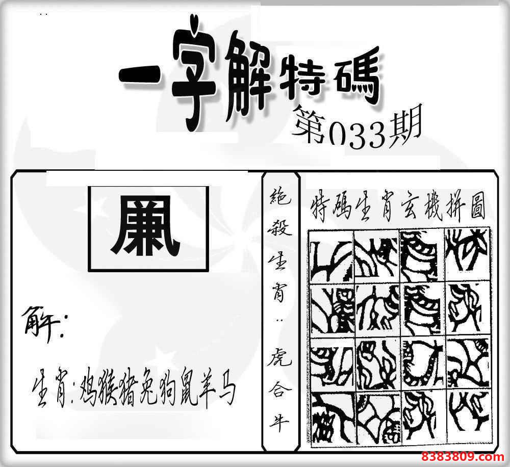 主题 : 033期:一字解特码