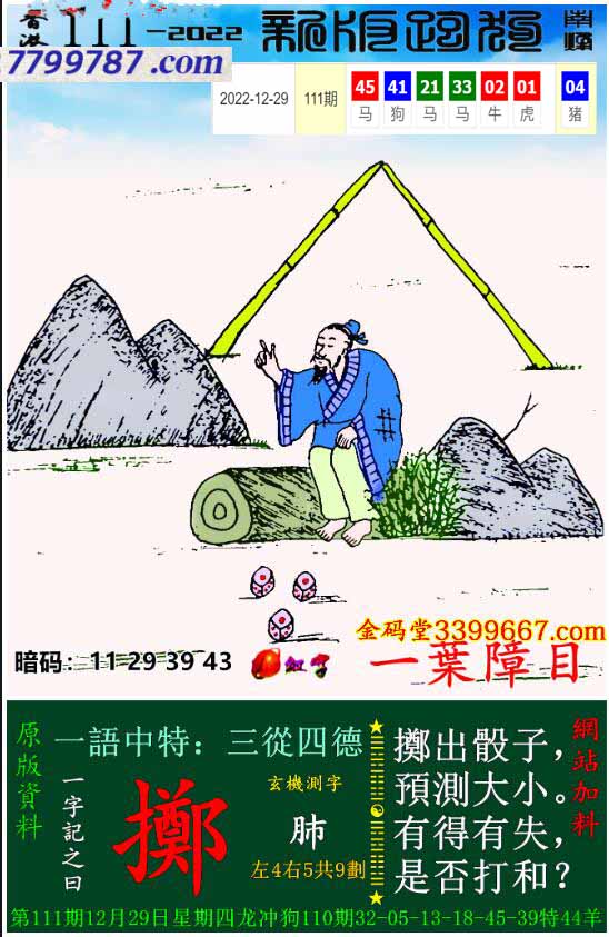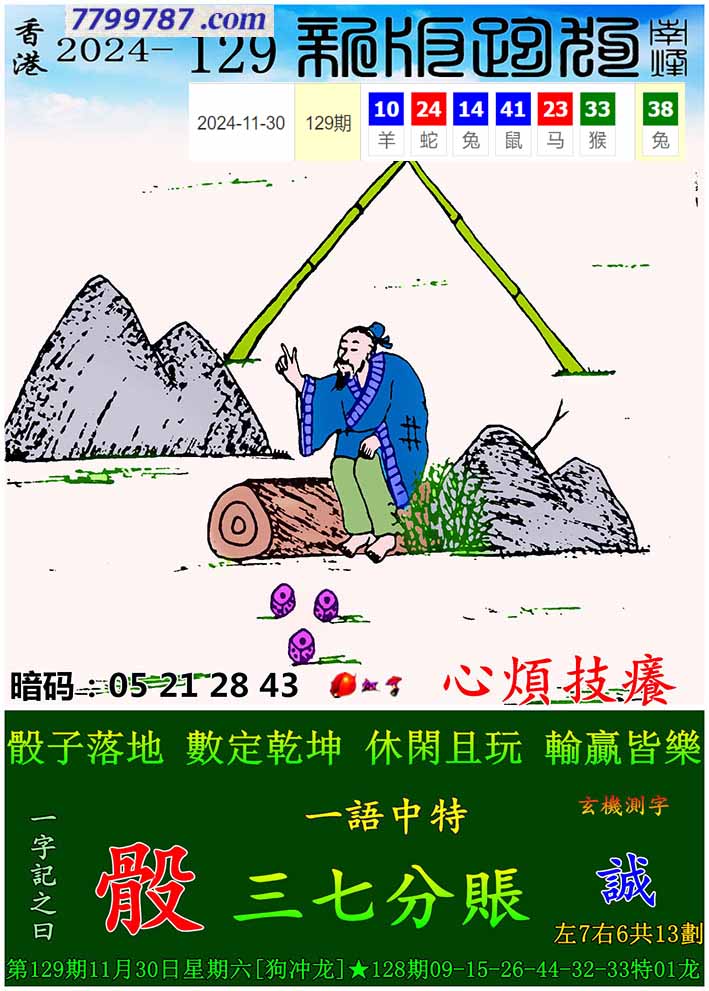 主题 : 033期:新版跑狗一字記之曰【擲】 玄機測字:【刻】