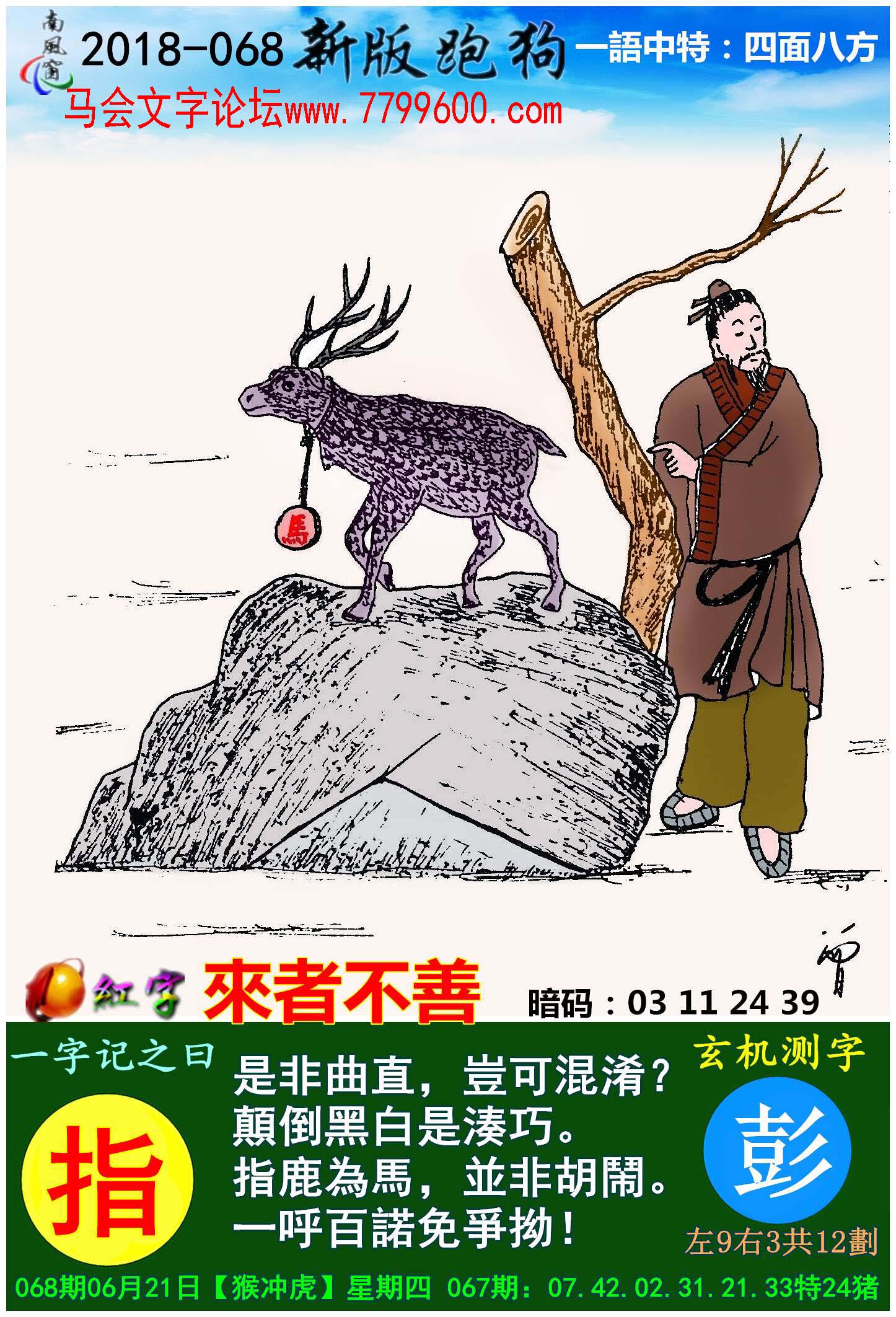 主题 : 068期:新版跑狗一字記之曰【指】玄機測字《彭》