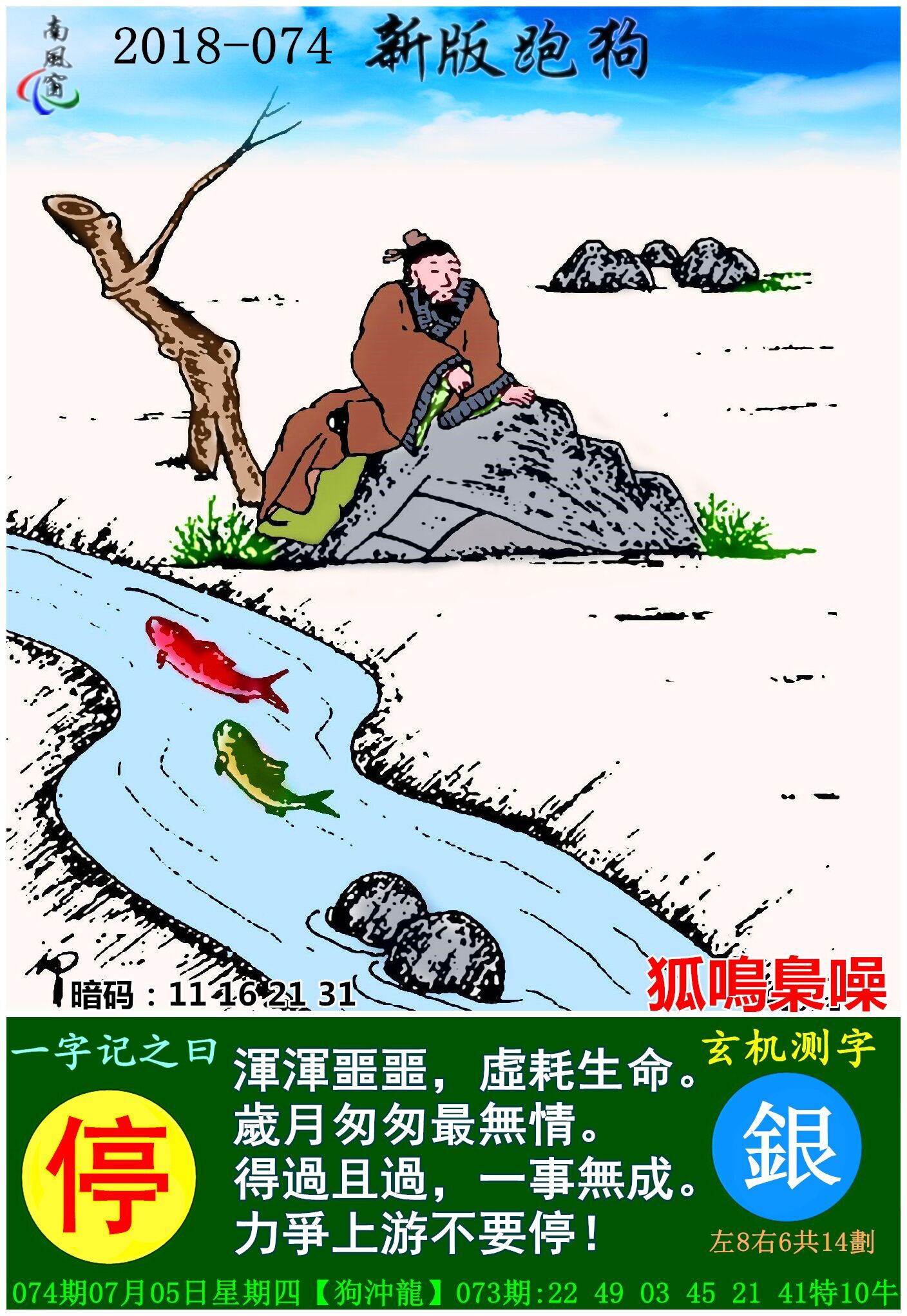 主题 : 074期:新版跑狗一字記之曰【停】玄機測字《銀》