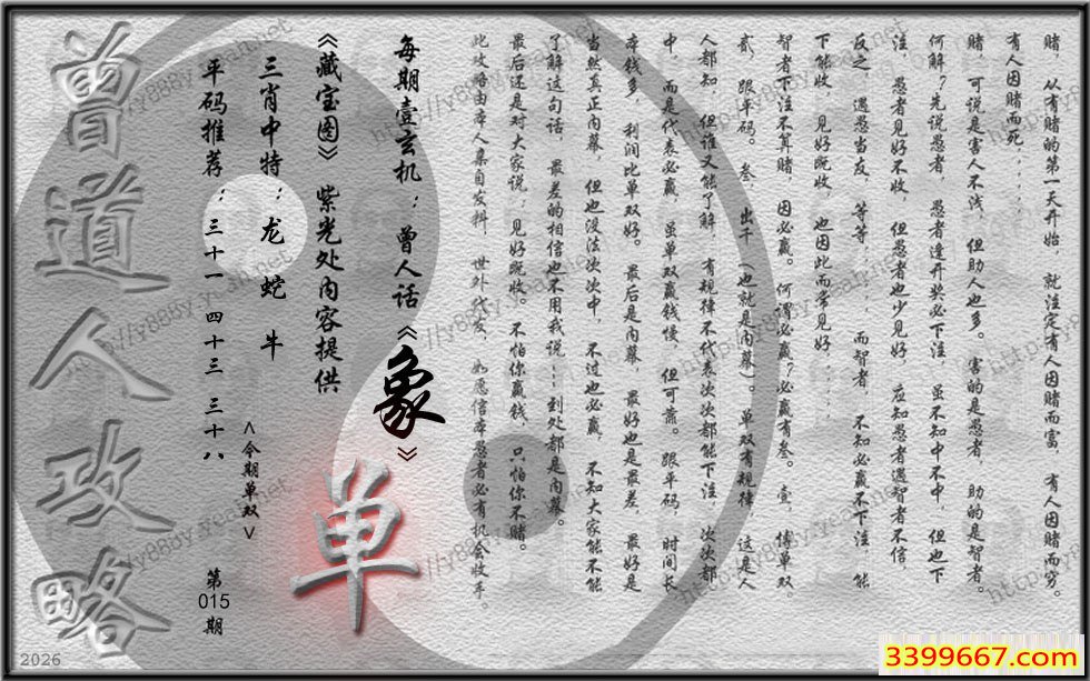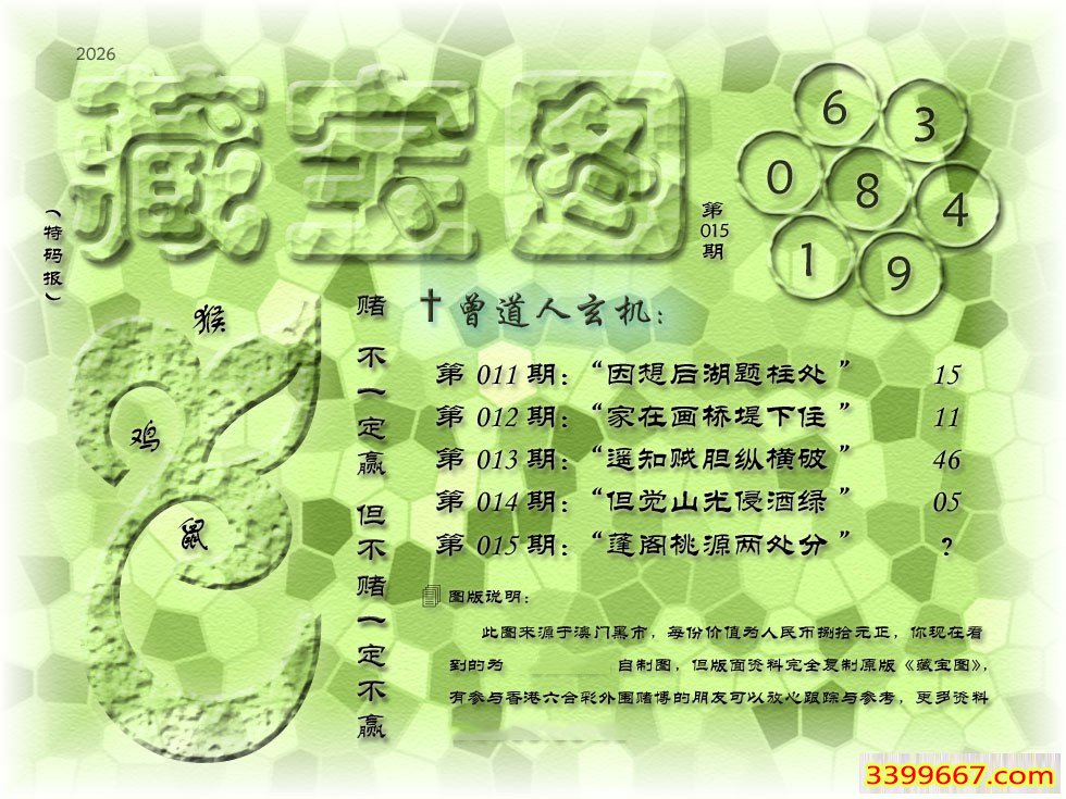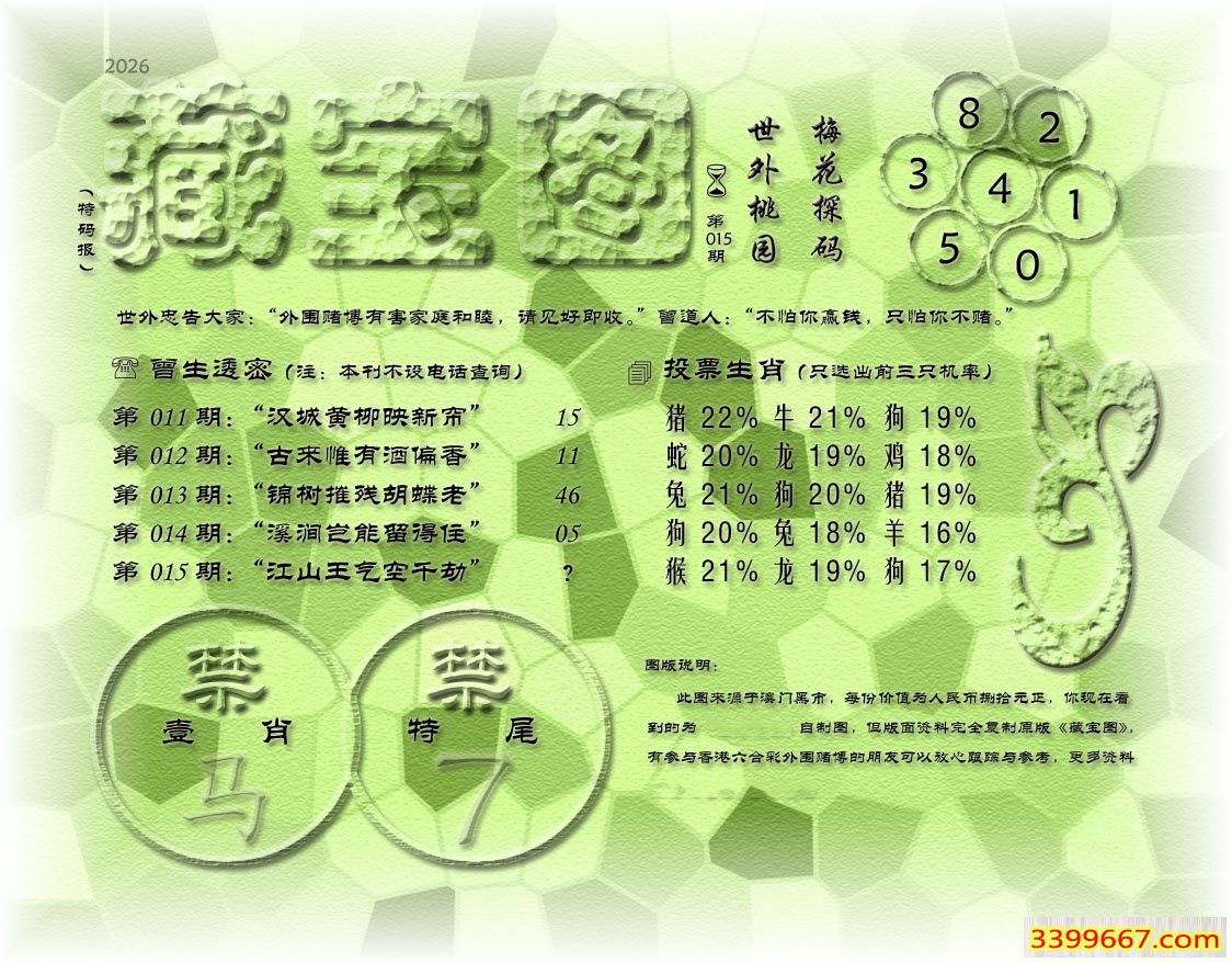 015期藏寶圖 新:蓬阁桃源两处分 老:江山王气空千劫 禁:马 禁:7尾
