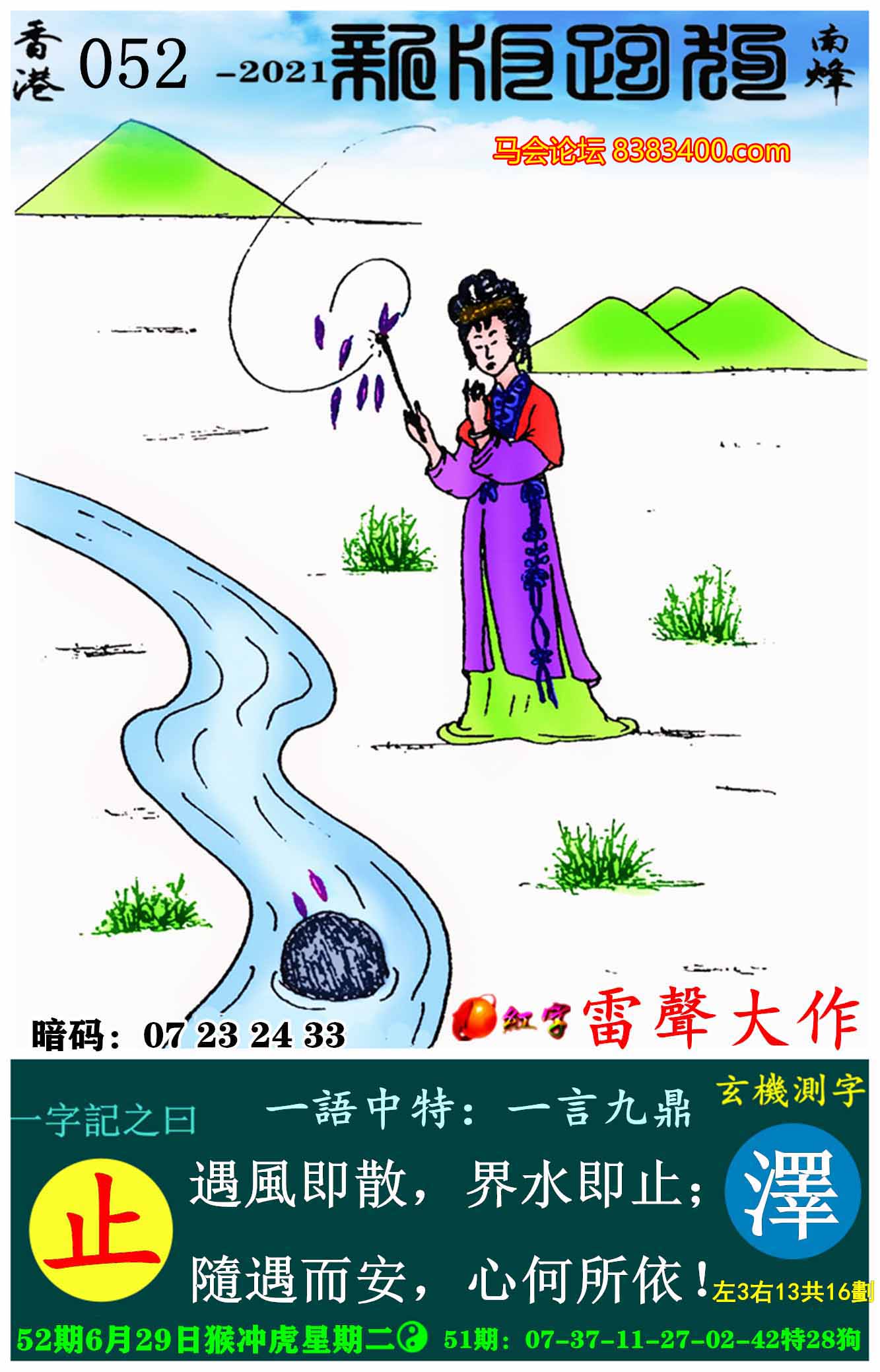 052期:新版跑狗一字記之曰【止】玄機測字:《澤》