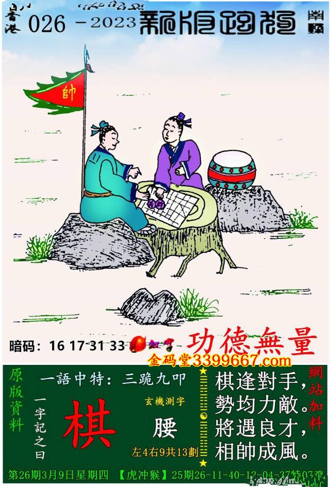 026期:新版跑狗一字記之曰【棋】 玄機測字:《腰》