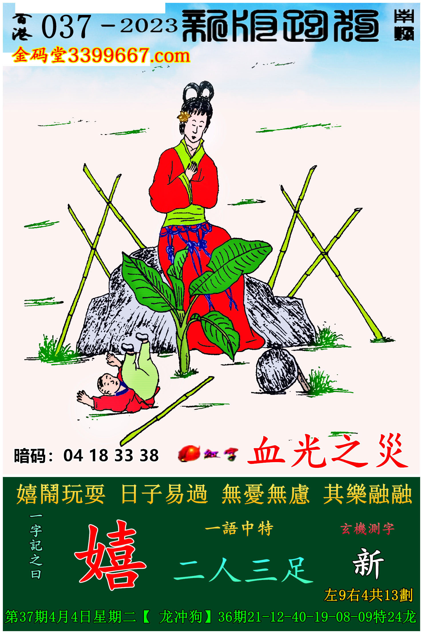 037期:新版跑狗一字記之曰【嬉】玄機測字:《新》
