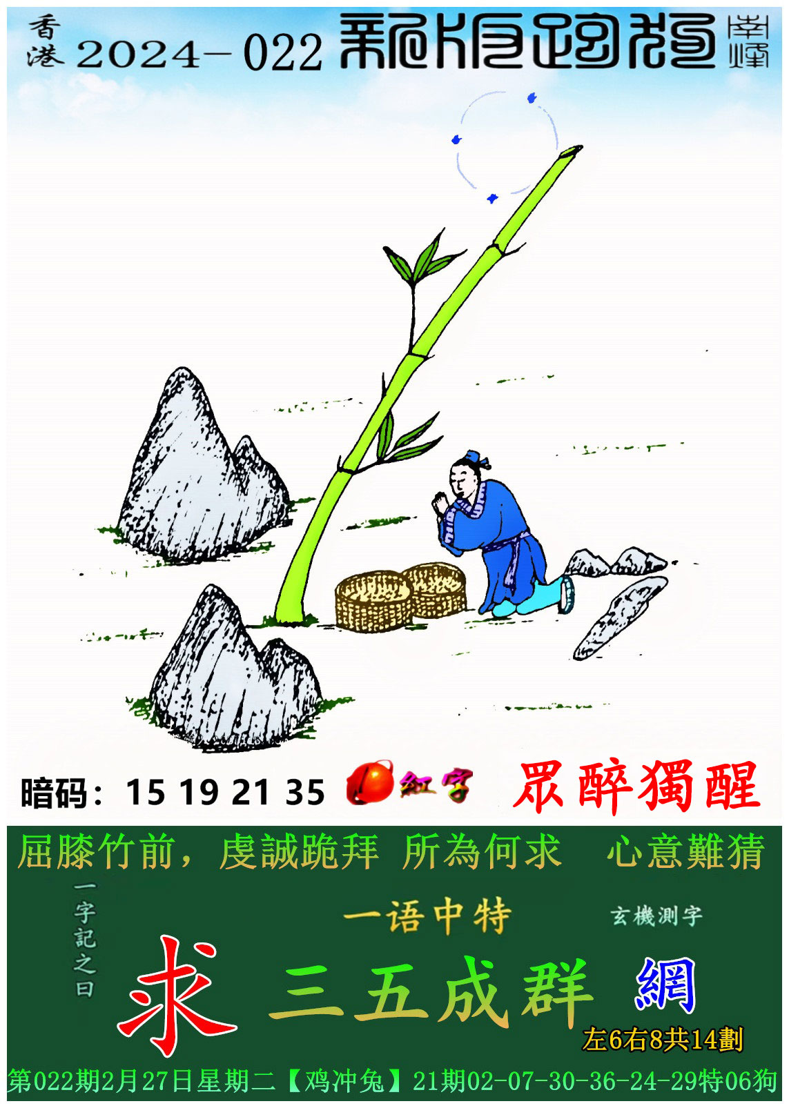 主题 : 022期:新版跑狗一字記之曰【求】 玄機測字:【媒】