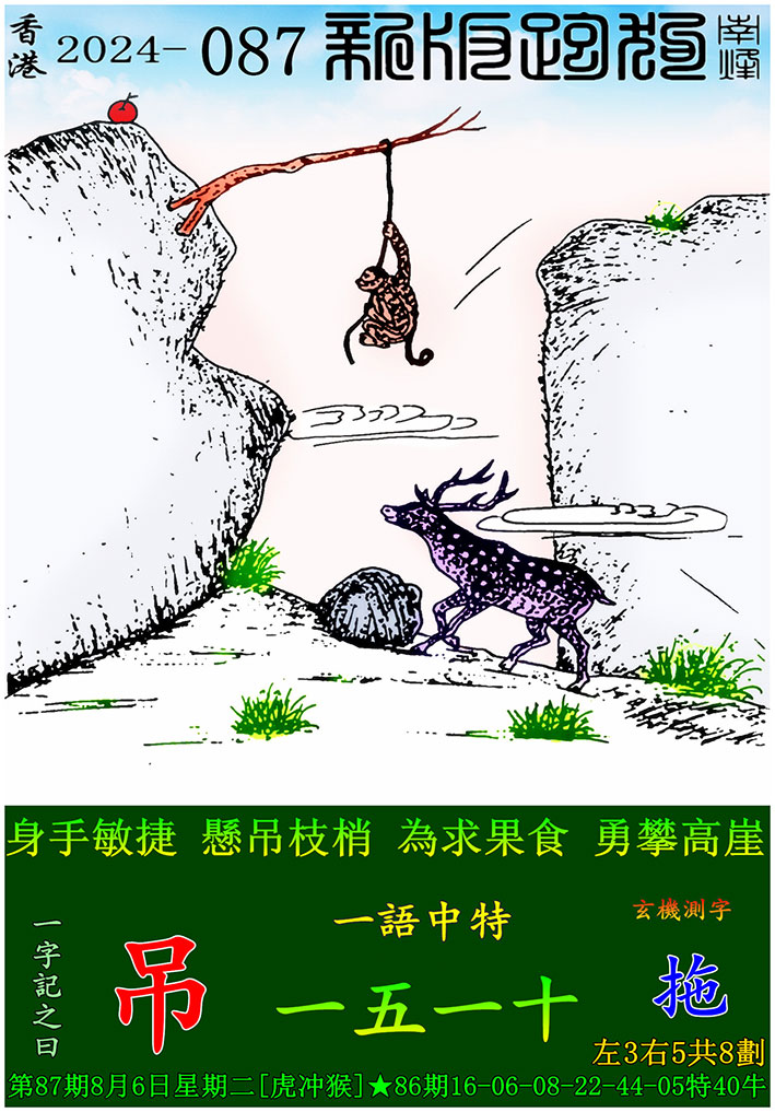 087期新版跑狗一字記之曰:【吊】