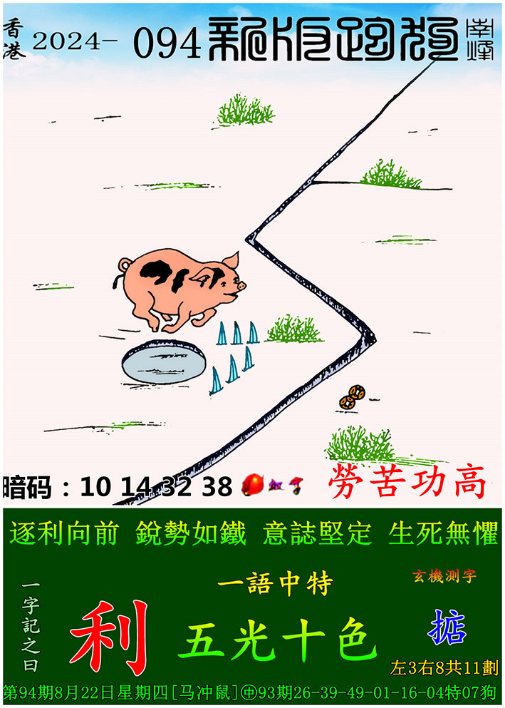 094期:新版跑狗一字記之曰【利】 玄機測字:【掂】