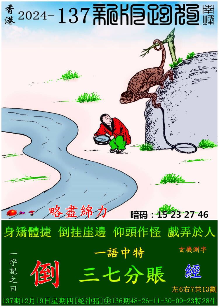 137期:新版跑狗一字記之曰【倒】 玄機測字:【經】
