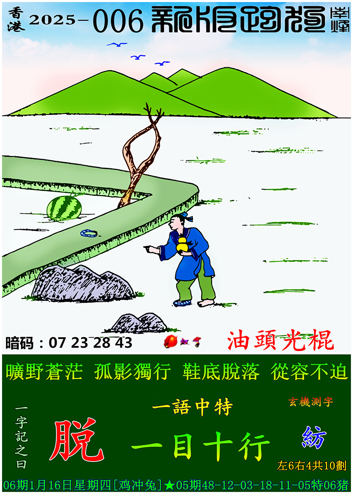 006期新版跑狗一字記之曰:【脱】