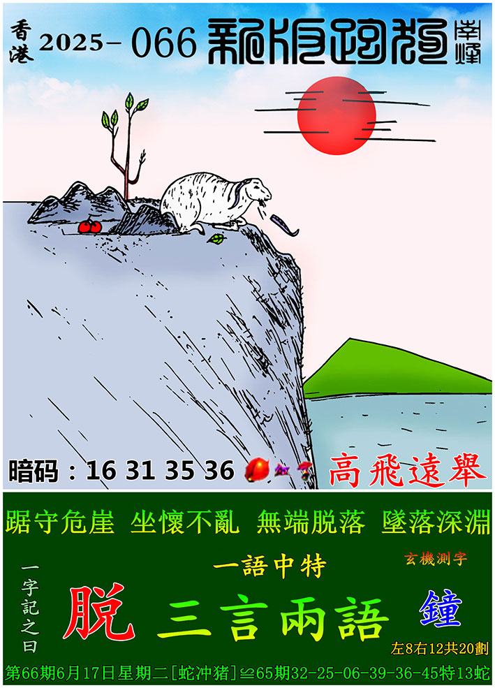 066期新版跑狗一字記之曰:【脱】