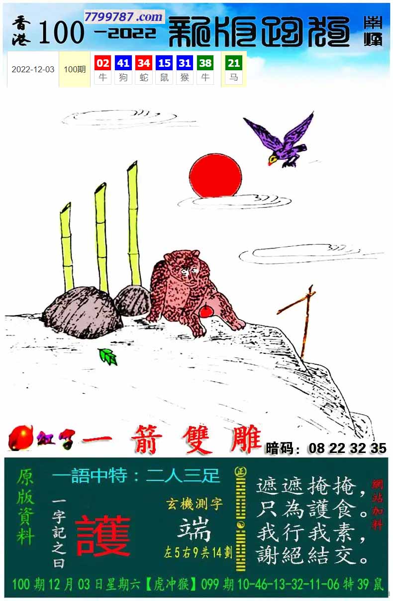112期新版跑狗一字記之曰:【取】