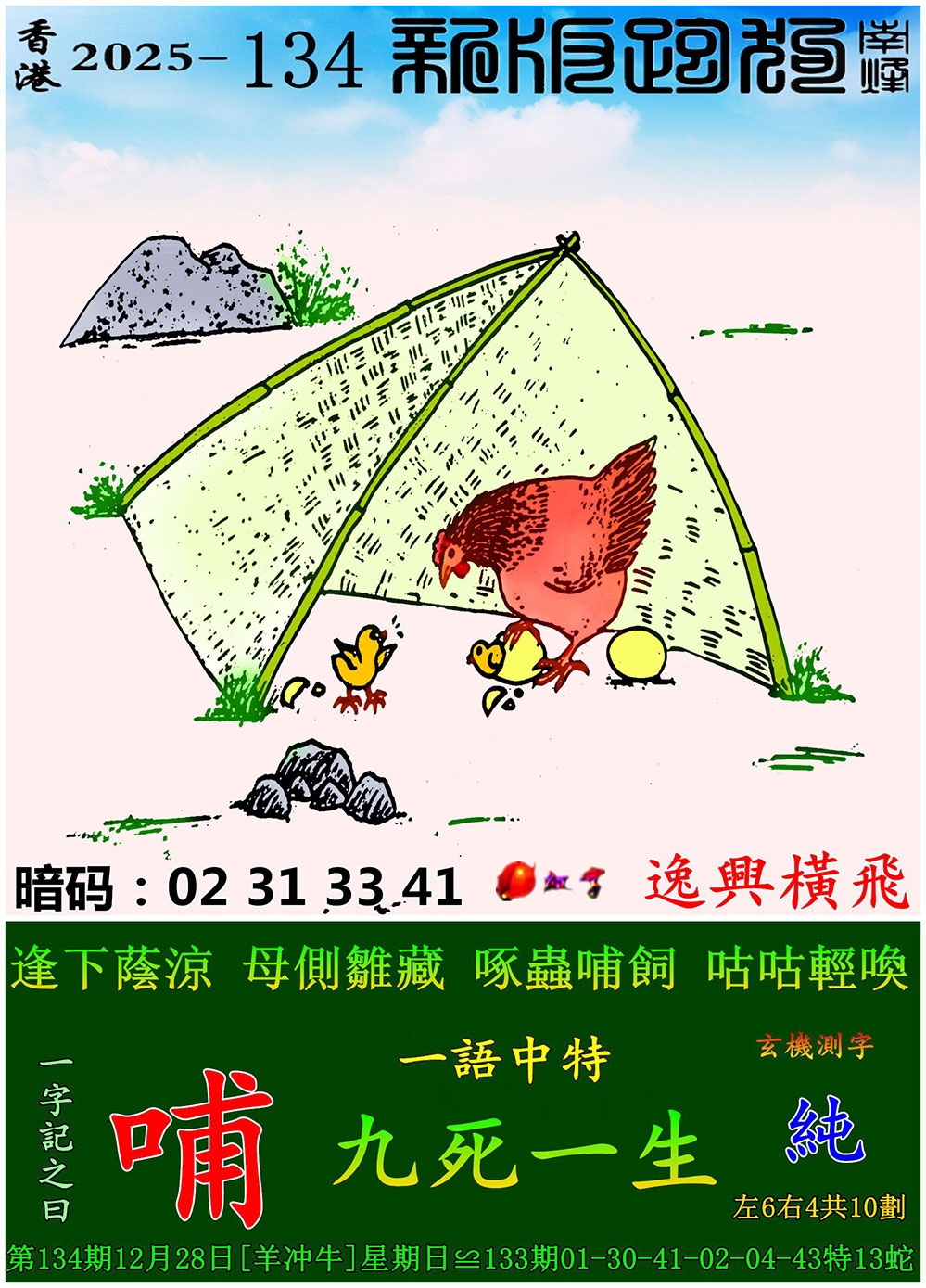 主题 : 134期:新版跑狗一字記之曰【哺】 玄機測字:【純】