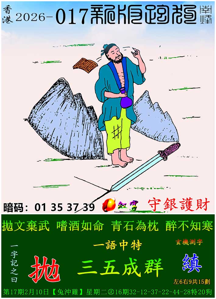 017期:新版跑狗一字記之曰【拋】 玄機測字:【縝】