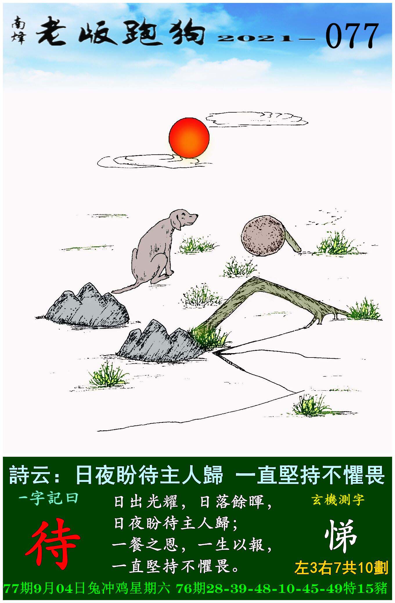 077期老版跑狗一字記之曰:【待】