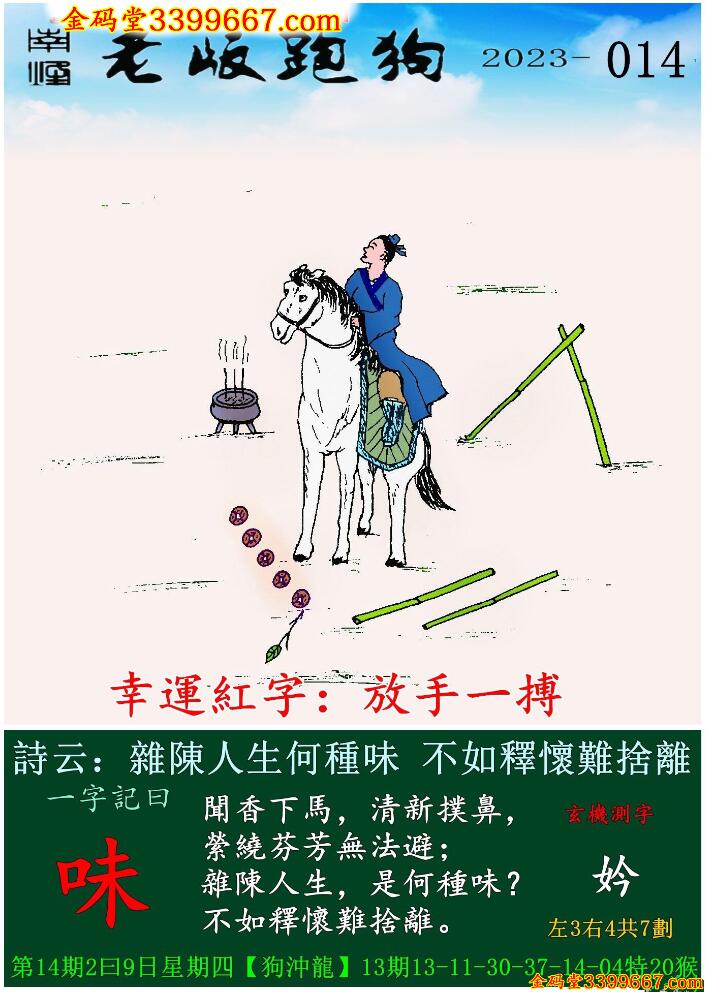主题 : 014期老版跑狗一字記之曰:【味】 玄機測字:《妗》
