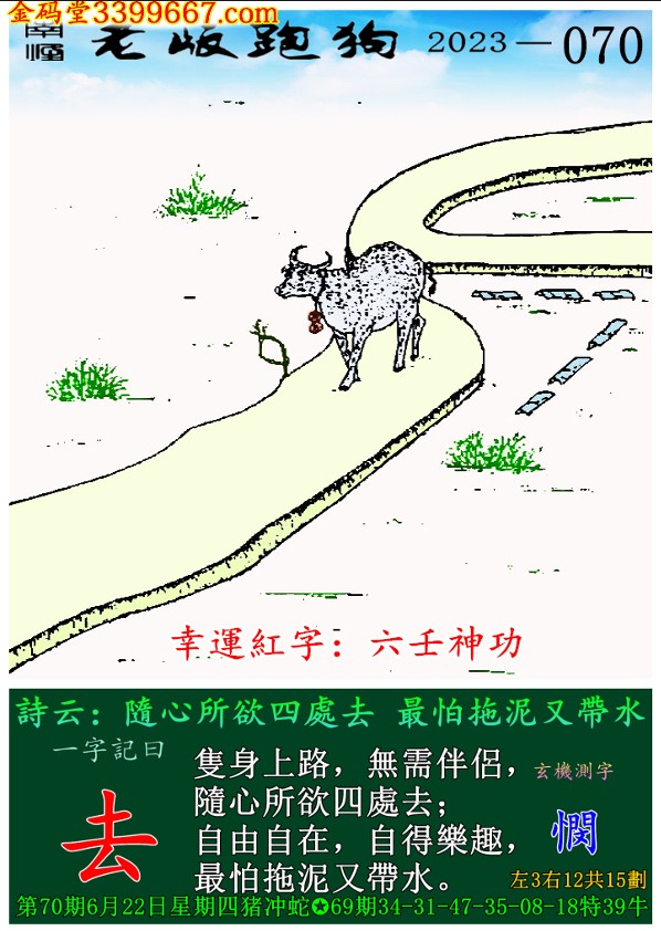 070期老版跑狗一字記之曰:【去】 玄機測字:《憫》