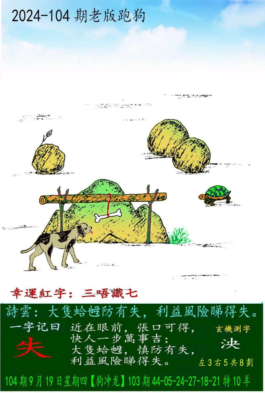 102期老版跑狗一字記之曰:【失】