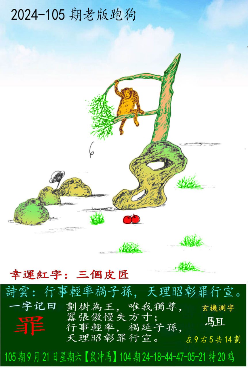 主题 : 105期老版跑狗一字記之曰:【罪】 玄機測字:《駔》