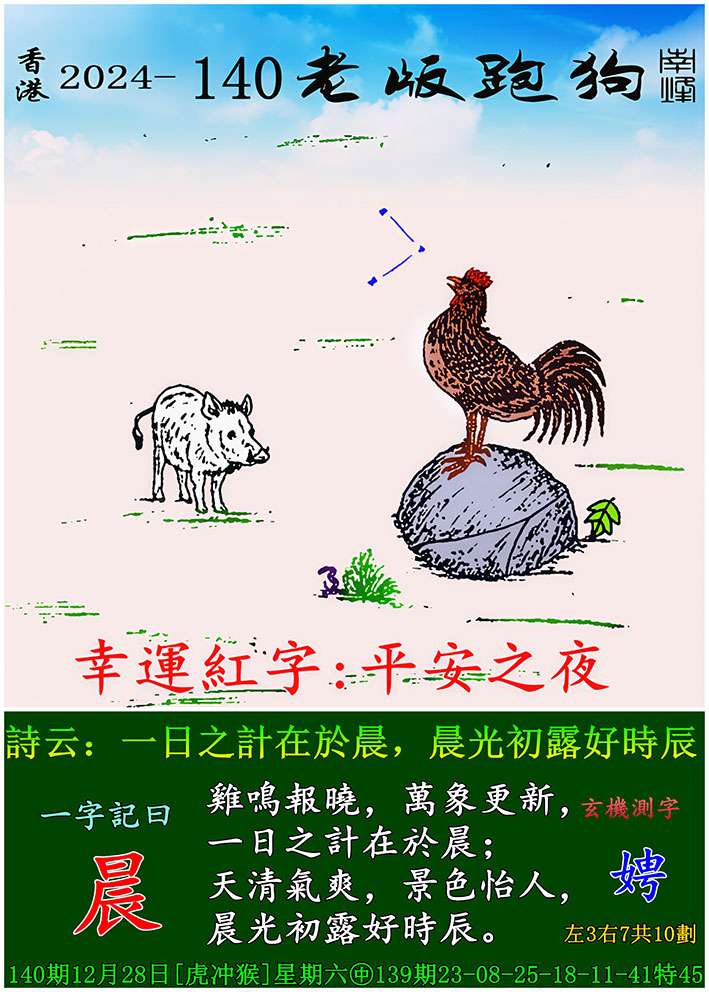 主题 : 140期老版跑狗一字記之曰:【晨】 玄機測字:《娉》