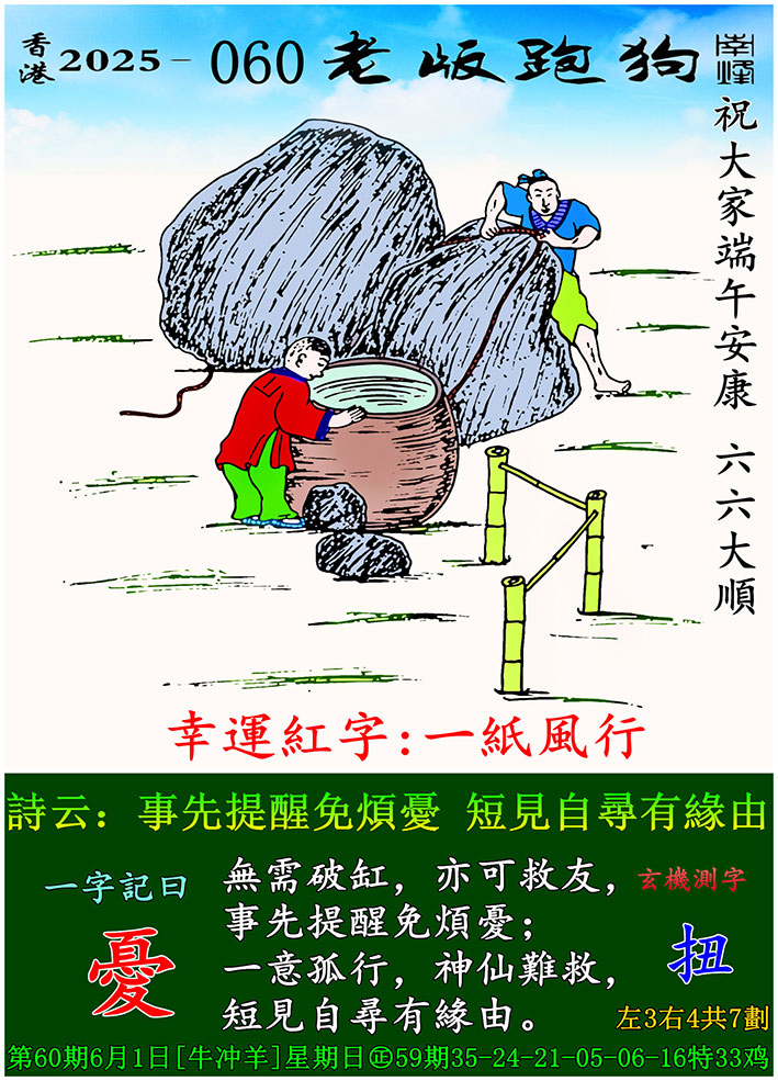 主题 : 060期老版跑狗一字記之曰:【憂】 玄機測字:《扭》