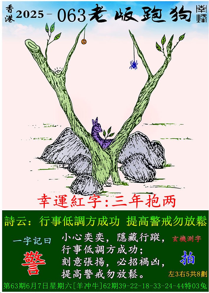 063期老版跑狗一字記之曰:【警】 玄機測字:《拍》