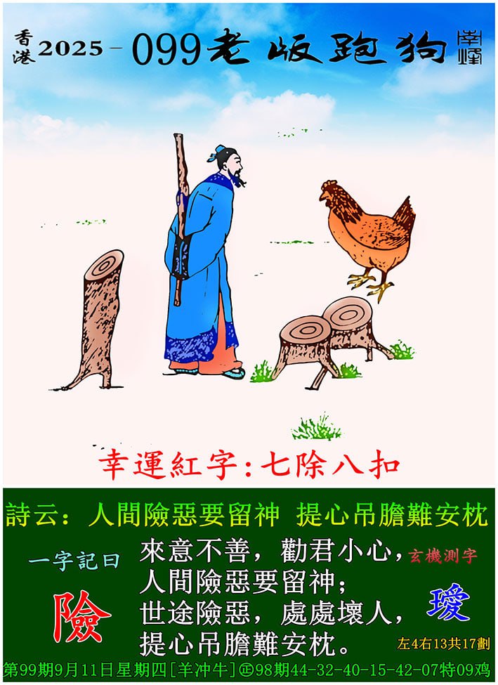 主题 : 099期老版跑狗一字記之曰:【險】 玄機測字:《璦》