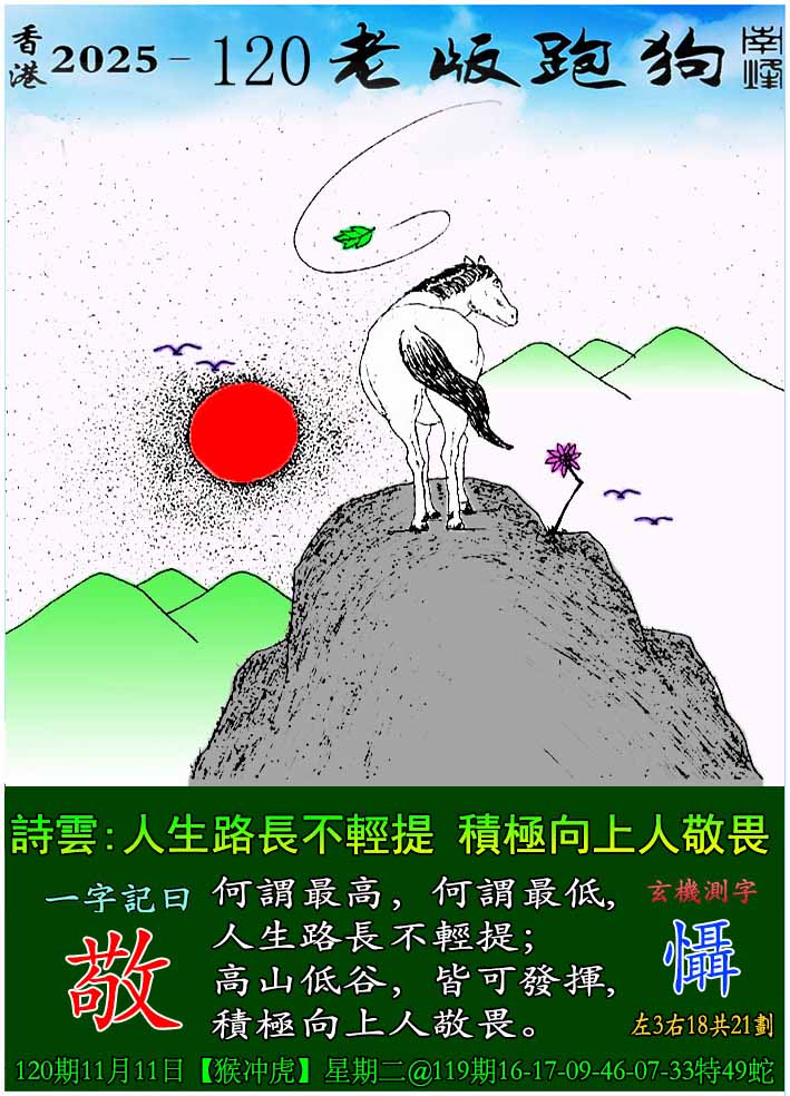 主题 : 120期老版跑狗一字記之曰:【敬】 玄機測字:《懾》