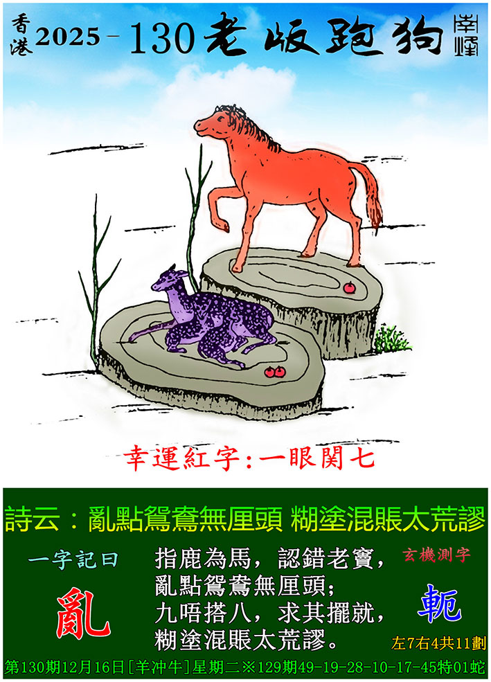 主题 : 130期老版跑狗一字記之曰:【亂】 玄機測字:《軛》