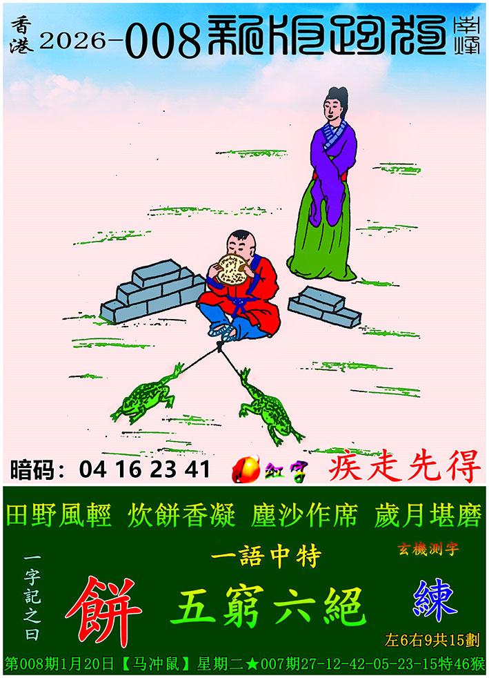 008期老版跑狗一字記之曰:【好】 詩雲:繼續迎接新挑戰,美好人