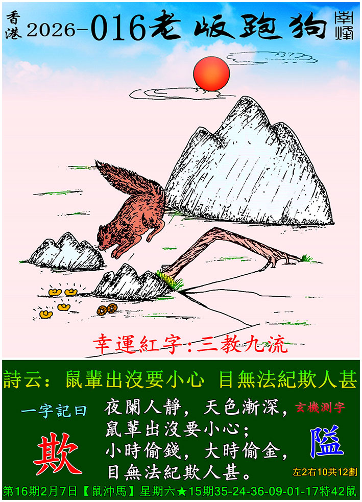 主题 : 016期老版跑狗一字記之曰:【欺】 玄機測字:《隘》