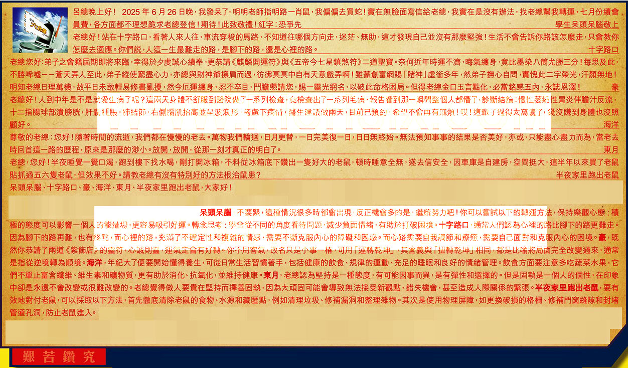 【1】.呂總晚上好!2025年6月26日晚,我發呆了,明明老師指明路一肖鼠我,偏偏去買蛇!實在無臉面寫信給老總,我實在是沒有辦法,找老總幫我轉運,七月份續會員费,各方面都不理想跪求老總登信!期待!此致敬禮!紅字:恐爭先 學生呆頭呆腦敬上