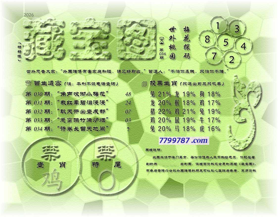 034期藏寶圖 新:瘦影自临春水照 老:诗卷长留天地间 禁:鸡 禁:0尾 玄機字:《霜》