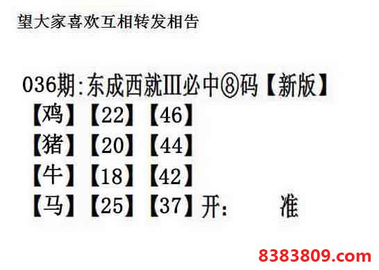 主题 : 036期:另版【东成西就四肖8码】
