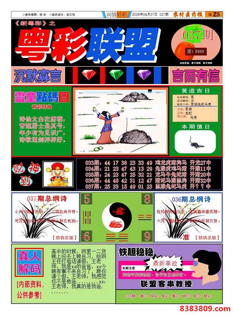 主题 : 037期:粤彩联盟A